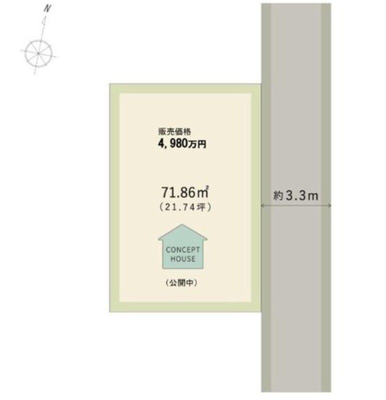 | 駐車場 | 1台 | 道路の幅員 | 約3.3m、アスファルト舗装、私道負担:有 セットバック+持出道路約22.05m2(セットバック済) |