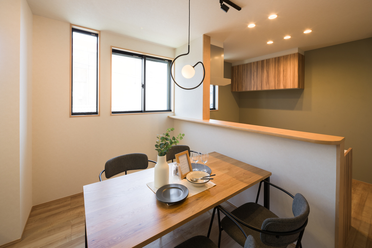 通行人からの視線が届きにくい2階LDK。採光窓には腰高窓を採用し、明るさとプライバシーに配慮しました。