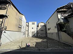 前面道路は西側幅員約4.0m。アスファルト舗装された平坦な道路のため、徒歩や自転車での移動もスムーズに行えます。1台分のガレージ付きです(車種による)。