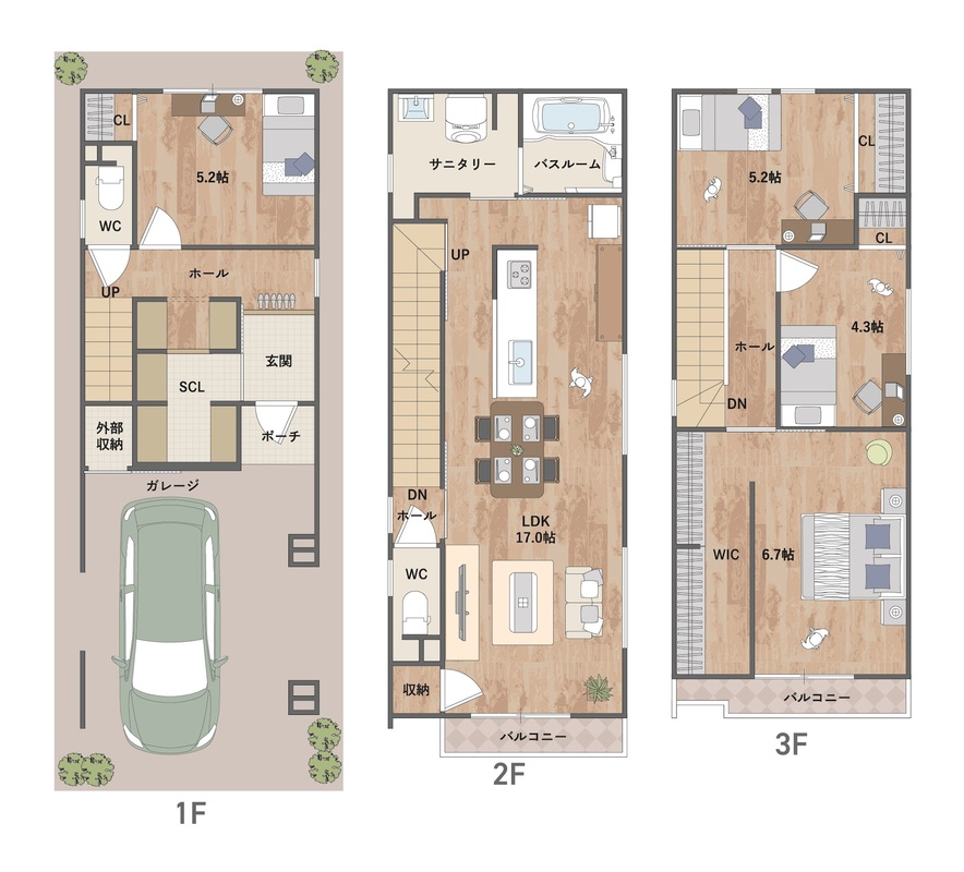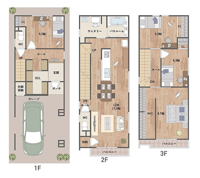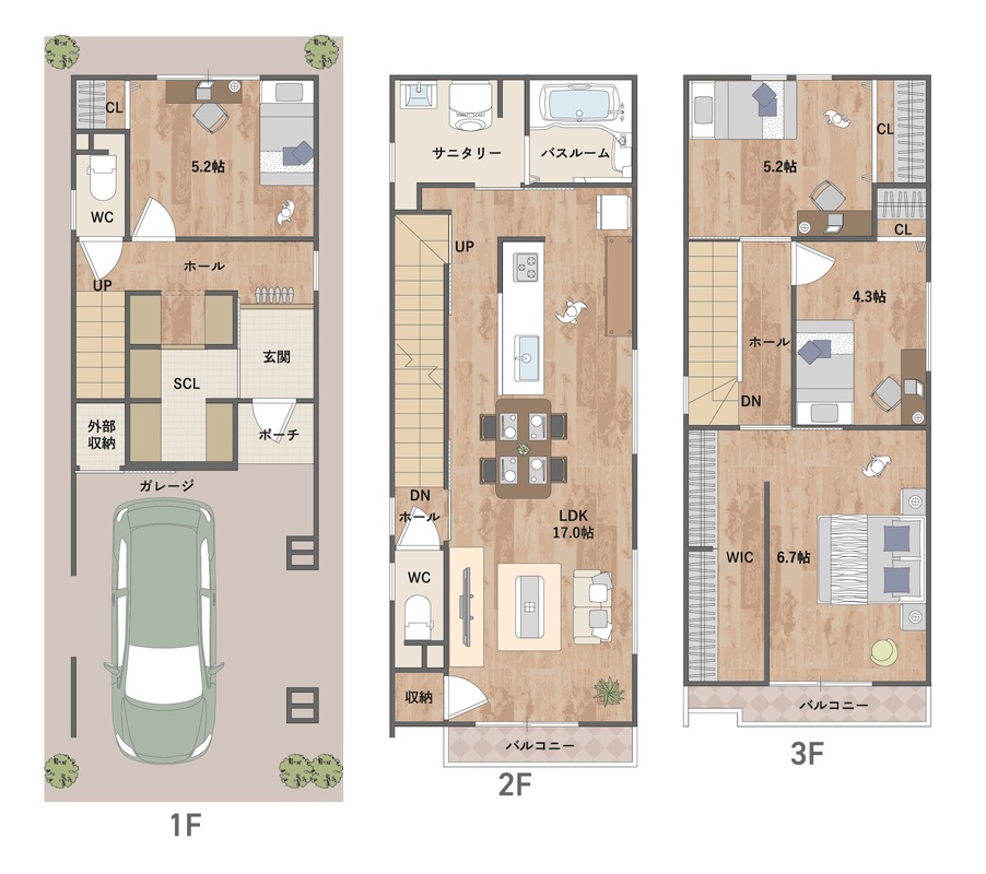 - ※完成予想図やCG合成画像は、門塀・植栽・庭・外観等、実際とは多少異なる場合があります。
