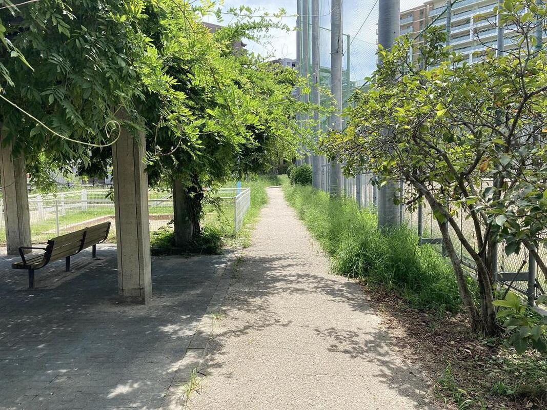 徒歩2分(約160m)。ロッキング遊具、幼児向けのコンビネーション遊具、ブランコなど小さなお子様向けの遊具が充実した公園。園内に運動場があり、フェンスで区切られているため安全に遊ぶことができます。
