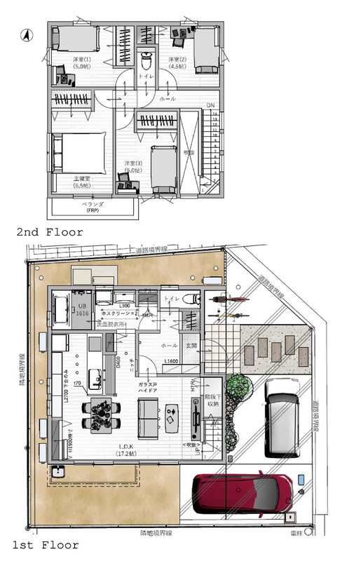 - ※完成予想図やCG合成画像は、門塀・植栽・庭・外観等、実際とは多少異なる場合があります。