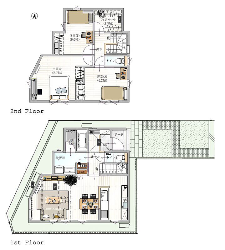 - ※完成予想図やCG合成画像は、門塀・植栽・庭・外観等、実際とは多少異なる場合があります。