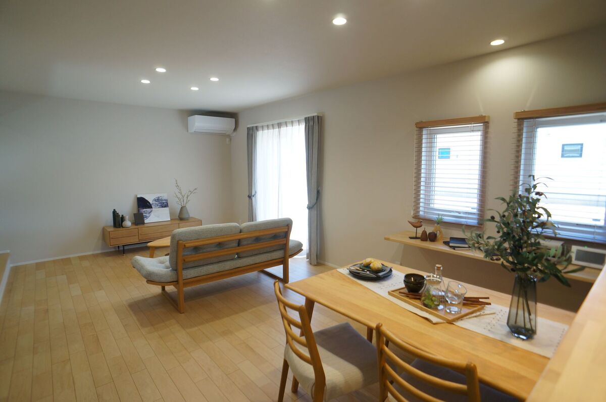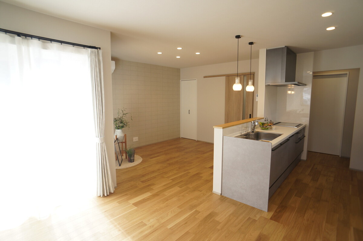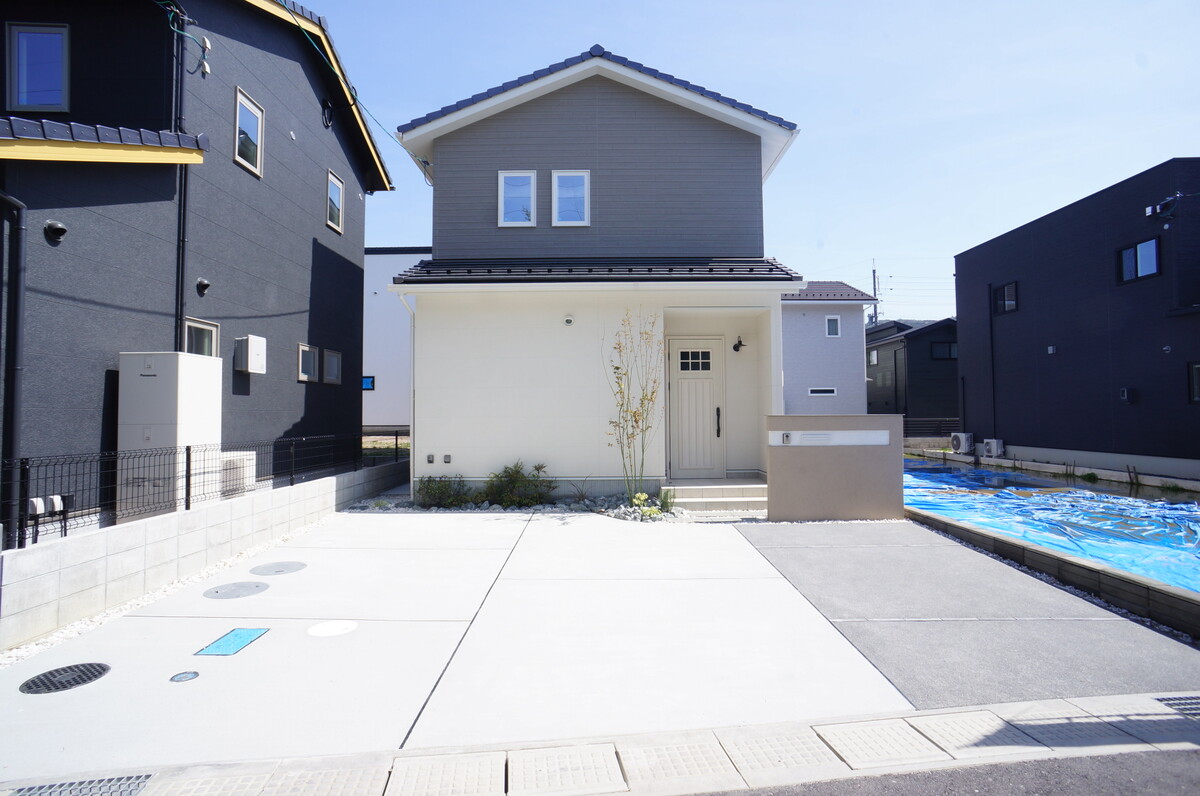 デザイン性はもちろん、日当たりや家事動線まで考え抜かれた最新の住まいが完成しました。広いカースペースは並列駐車が可能で、趣味の場としても大活躍。室内にはテレワークに便利なカウンターや、収納力抜群のWIC、癒しのヌックなど、現代の暮らしに寄り添う工夫が満載です。閑静な住宅街ながら、開放感あふれる街並みも魅力の一つ。最新設備が整った「できたて」の住まいで、家族の笑顔が弾む新生活をスタートさせませんか?