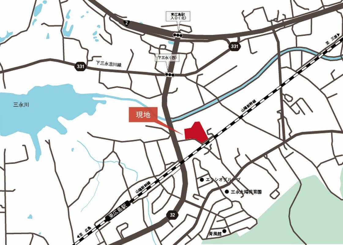 JR山陽新幹線「東広島」駅 徒歩13分 芸陽バス「高岡」バス停 徒歩8分 |