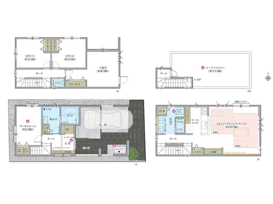 | 間取り | 3LDK+S | 建物構造 | 木造 3階建 |