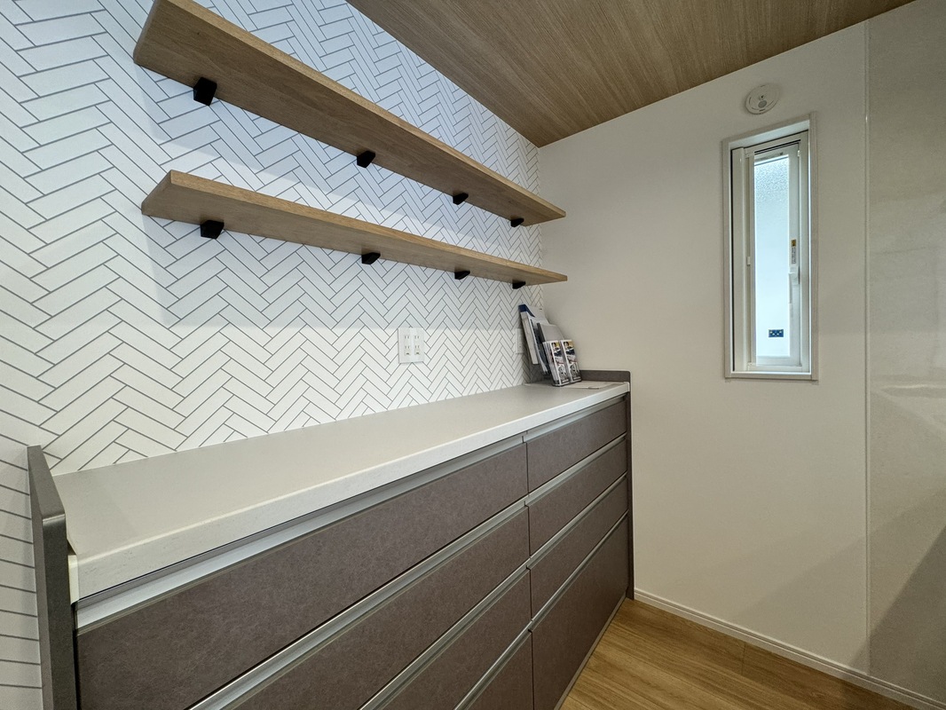 ■パナホームの家○カフェ風の内装○ランドリールームを兼ねた使い勝手の良い3帖の書斎○キッチン背面収納、シューズクロークや2Fホールからアクセスできるウォークインクローゼットなど収納充実