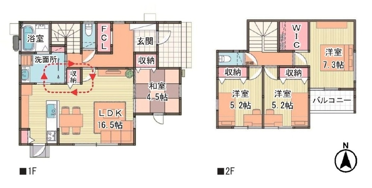 ~南側にゆとりの空間がある開放的な家~外出時の身支度や帰宅後の収納に便利な1階ホールのファミリークローゼット。スムーズな移動でマルチタスクをこなすのに最適な回遊動線。適所収納で散らかり防止。