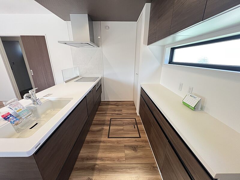 ◆キッチン背面にカップボードを標準装備 ◆玄関にはシューズインクローク完備!アウトドア用品などもすっきり片付きます ◆各棟、カースペース並列2台分 ◆接道広めの6m!駐車や離合の際も安心です