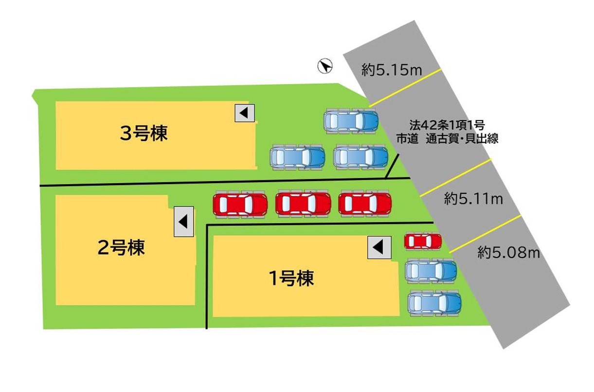 | 駐車場 | 3台 | 道路の幅員 | 3号棟:東5.1m |