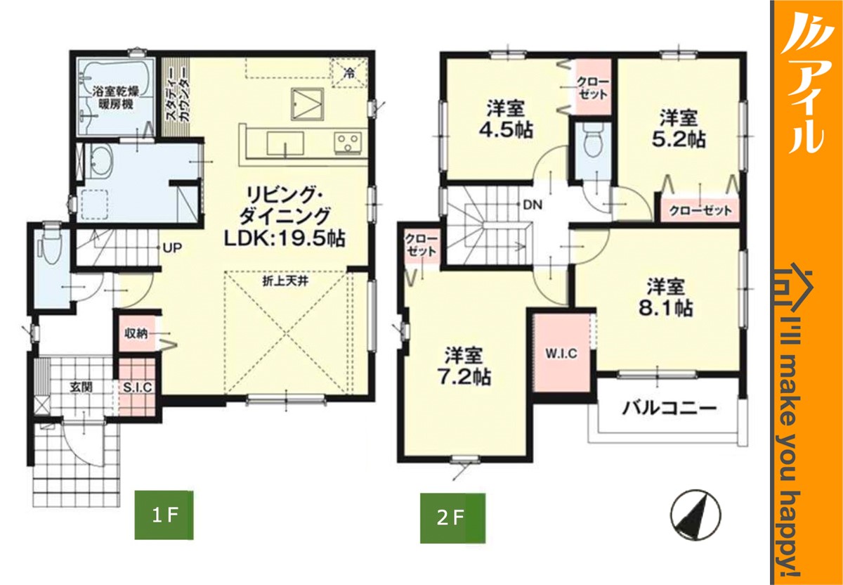■アイルは安心の創業39年! 定休日なし 毎日現地見学可能 店舗はリクルート天神ビル4Fです ■現地案内随時受付中 当日のご内覧も可能です!お仕事帰りのお時間でも事前にご相談頂ければ調整いたします。 ・さくっとコース・・・忙しいお客さまでもさくっとご見学可能です。 ・ゆっくりコース・・・細かい設備等もゆっくりとご説明させていただきます。 ・じっくりコース・・・分譲地+周辺環境なども一緒にご紹介可能です。 その他お客さまのご予定に合わせてご内覧いただけます。 ■お子様連れでのご内覧・ご来店も大歓迎! お子様向けのお菓子等ご用意しております。お気軽にお申し付けくださいませ。 ■ご案内方法 ◎お客さまのご指定時間帯に、現地物件でのお待ち合わせ ◎担当スタッフによる送迎 ・ご自宅 ・最寄駅 ・物件近くの目印施設 etc… その他ご希望のお迎え場所等ございましたらお気軽にご相談下さい。 ◎弊社にご来店される場合 福岡市中央区舞鶴1-1-3 リクルート天神ビル4F ※お車でお越しの場合、駐車場料金は弊社が負担いたしますのでご安心ください 『接道』角地 南西6m公道 南東4m公道 『法令上の制限』その他制限事項:建築基準法第22条区域 設備:個別LPG 公営水道 下水 防犯シャッター 駐車場2台以上 閑静な住宅地 平坦地 角地 前道6m以上 スーパーが近い(10分以内) 小学校徒歩10分以内 公園5分以内 システムキッチン ガス3口 カウンタキッチン 対面キッチン 食器洗い機付き 浄水器 追い焚き 浴室乾燥機 ウォシュレット オートバス付き 脱衣所 トイレ2ヶ所 浴室1坪以上 浴室に窓 節水型トイレ 浴室暖房 バルコニー 2階建 LDK18畳以上 全室2面採光 東南向き 全室フローリング リビング階段 クローゼット ウォークインクローゼット 収納 床下収納 下駄箱 全居室収納 洗面室収納 シューズインクローク シャンプドレッサー付き フラット35Sに対応 年内入居可 モニタ付きインターフォン 複層ガラス 陽当り良好 24時間換気システム |