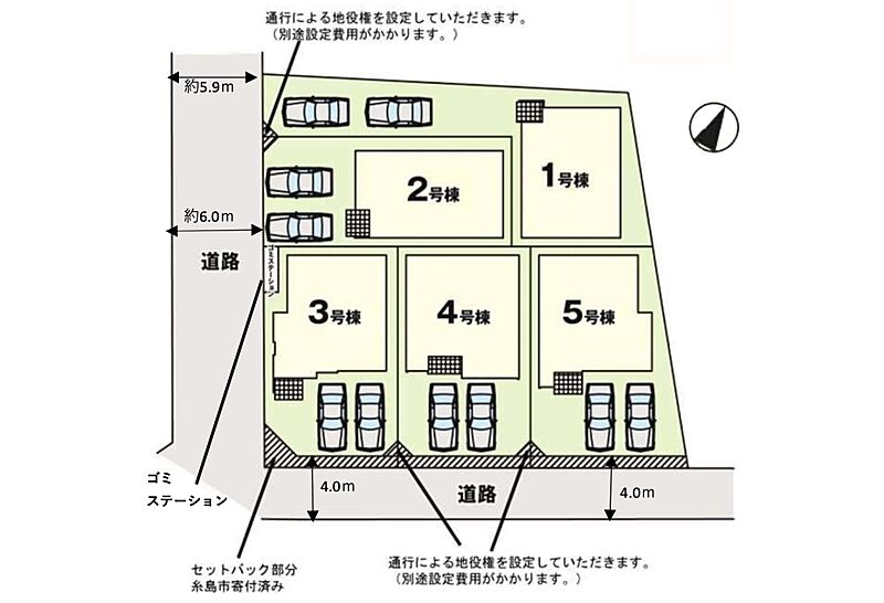 | 駐車場 | 2台 | 道路の幅員 | 3号棟:南西6m 南東4m |