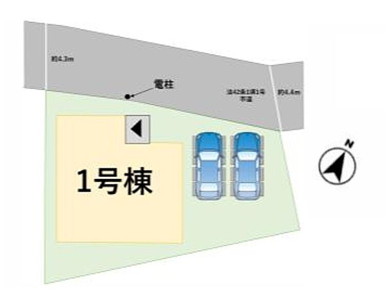 | 駐車場 | 2台 | 道路の幅員 | 1号棟:北西4.3m |