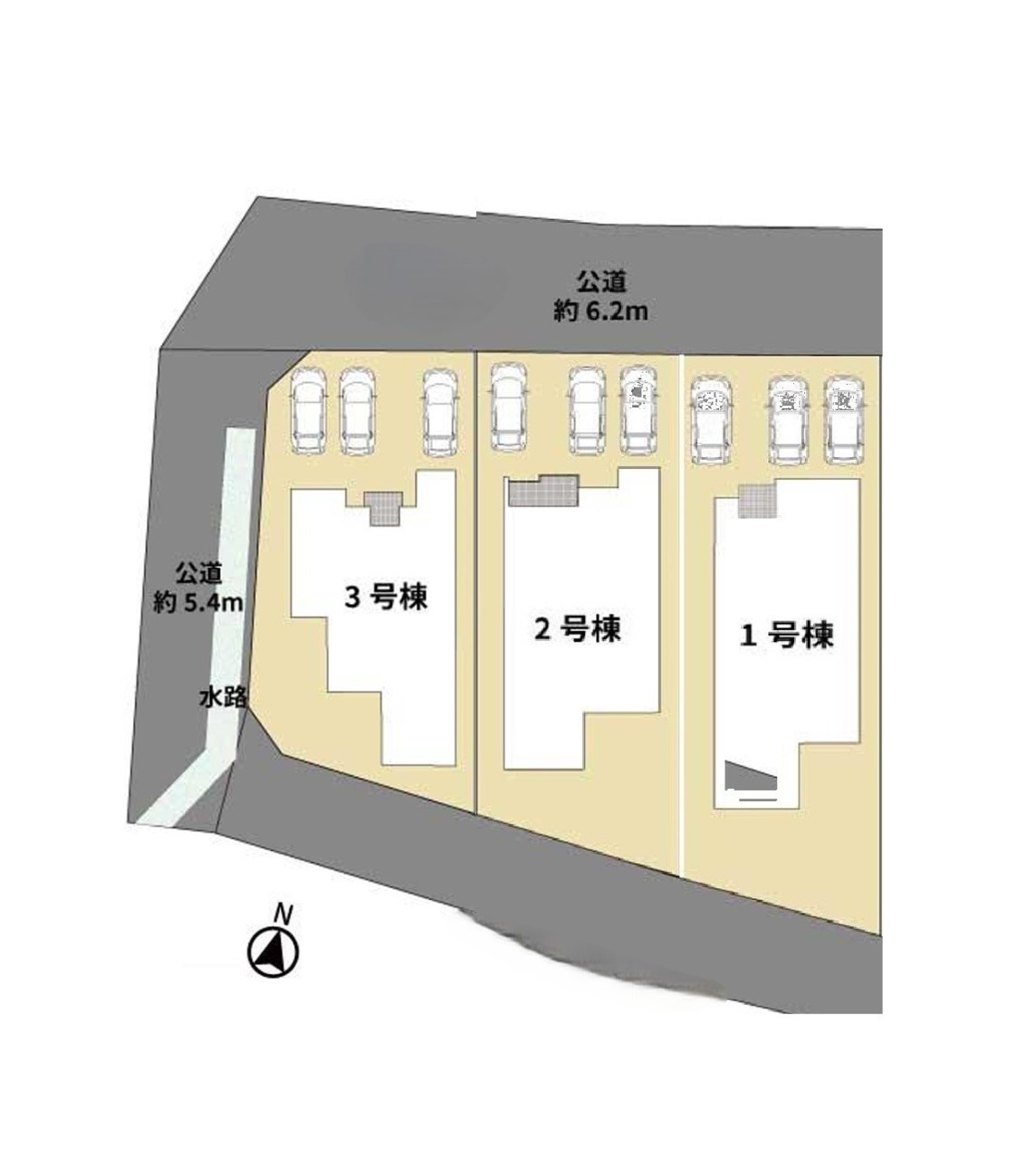 | 駐車場 | 3台 | 道路の幅員 | 2号棟:北西6.2m /1号棟:北西6.2m |