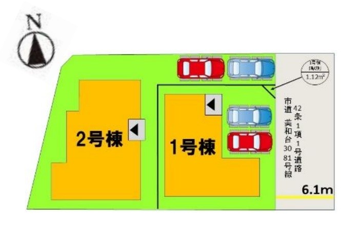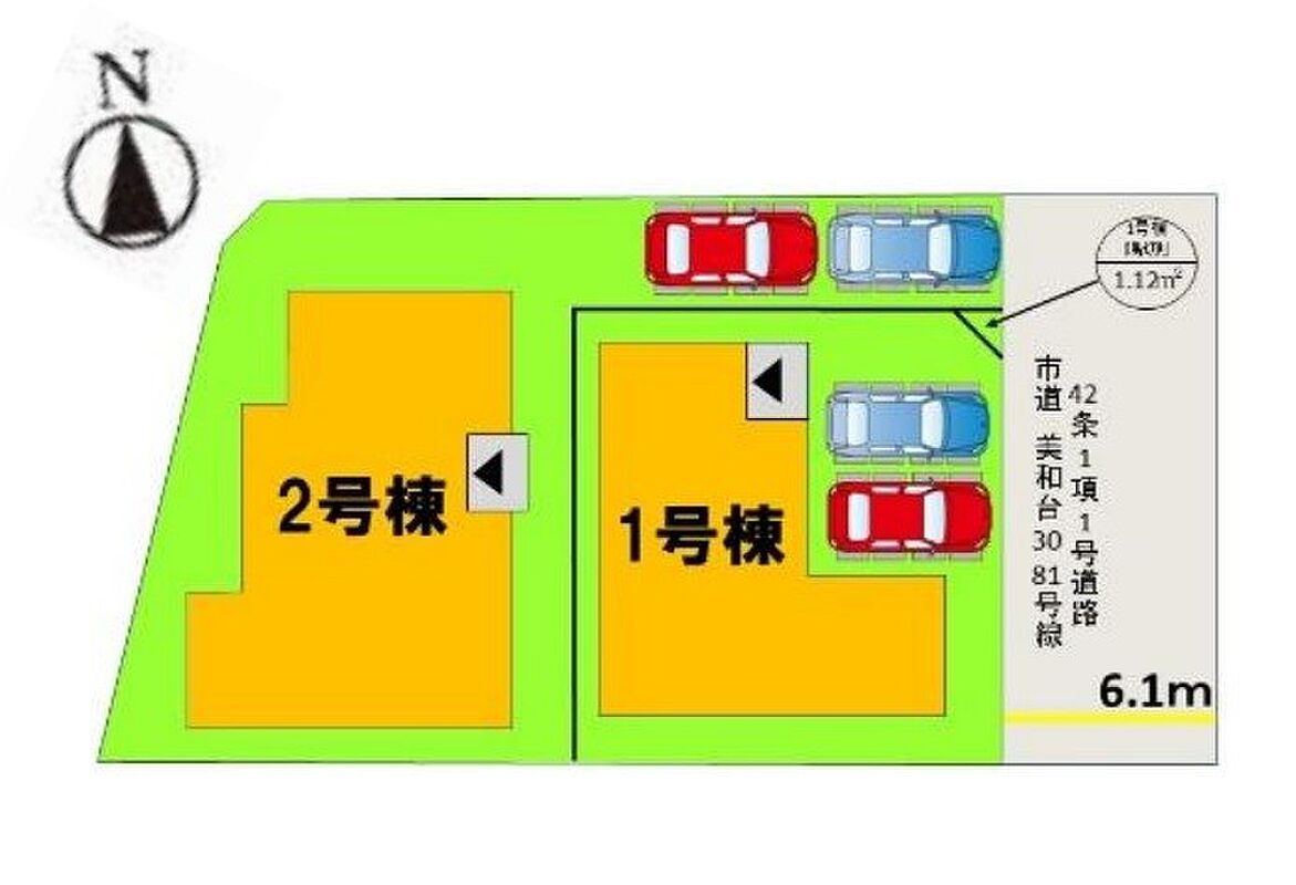 | 駐車場 | 2台 | 道路の幅員 | 2号棟:東6.1m |