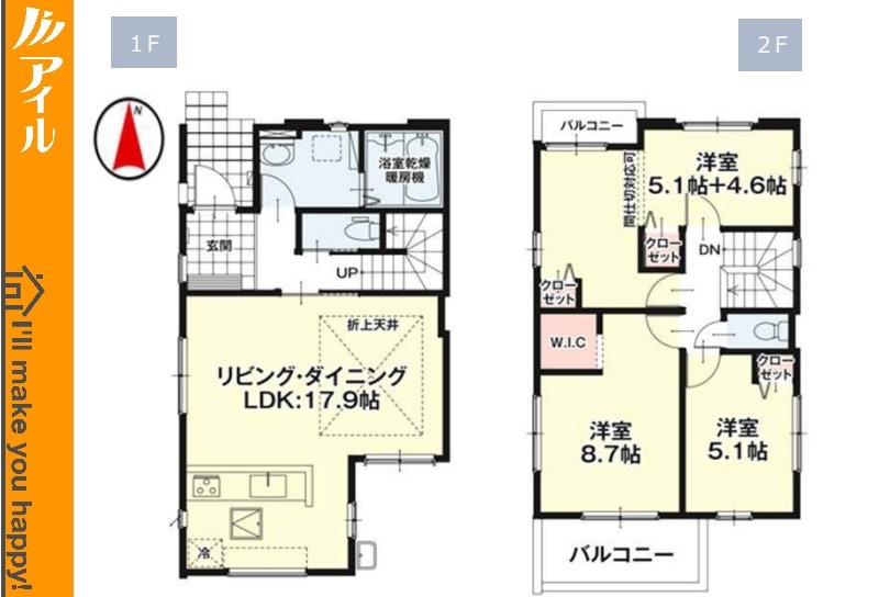 ■アイルは安心の創業39年! 定休日なし 毎日現地見学可能 店舗はリクルート天神ビル4Fです ■現地案内随時受付中 当日のご内覧も可能です!お仕事帰りのお時間でも事前にご相談頂ければ調整いたします。 ・さくっとコース・・・忙しいお客さまでもさくっとご見学可能です。 ・ゆっくりコース・・・細かい設備等もゆっくりとご説明させていただきます。 ・じっくりコース・・・分譲地+周辺環境なども一緒にご紹介可能です。 その他お客さまのご予定に合わせてご内覧いただけます。 ■お子様連れでのご内覧・ご来店も大歓迎! お子様向けのお菓子等ご用意しております。お気軽にお申し付けくださいませ。 ■ご案内方法 ◎お客さまのご指定時間帯に、現地物件でのお待ち合わせ ◎担当スタッフによる送迎 ・ご自宅 ・最寄駅 ・物件近くの目印施設 etc… その他ご希望のお迎え場所等ございましたらお気軽にご相談下さい。 ◎弊社にご来店される場合 福岡市中央区舞鶴1-1-3 リクルート天神ビル4F ※お車でお越しの場合、駐車場料金は弊社が負担いたしますのでご安心ください 『接道』一方 北6.3m公道 『法令上の制限』高さ最高限度:有その他制限事項:建築基準法22条指定区域 設備:都市ガス 公営水道 下水 駐車場2台以上 前道6m以上 スーパーが近い(10分以内) 小学校徒歩10分以内 中学校徒歩10分以内 保育施設・幼稚園5分以内 コンビニ5分以内 システムキッチン ガス3口 カウンタキッチン 対面キッチン 食器洗い機付き 浄水器 追い焚き 浴室乾燥機 ウォシュレット オートバス付き トイレ2ヶ所 浴室1坪以上 節水型トイレ 浴室暖房 バルコニー2面 2階建 LDK15畳以上 採光2面 南向き 全室フローリング スマートキー クローゼット ウォークインクローゼット 収納 床下収納 下駄箱 シャンプドレッサー付き フラット35Sに対応 年内入居可 モニタ付きインターフォン 複層ガラス 火災警報器(報知機) |