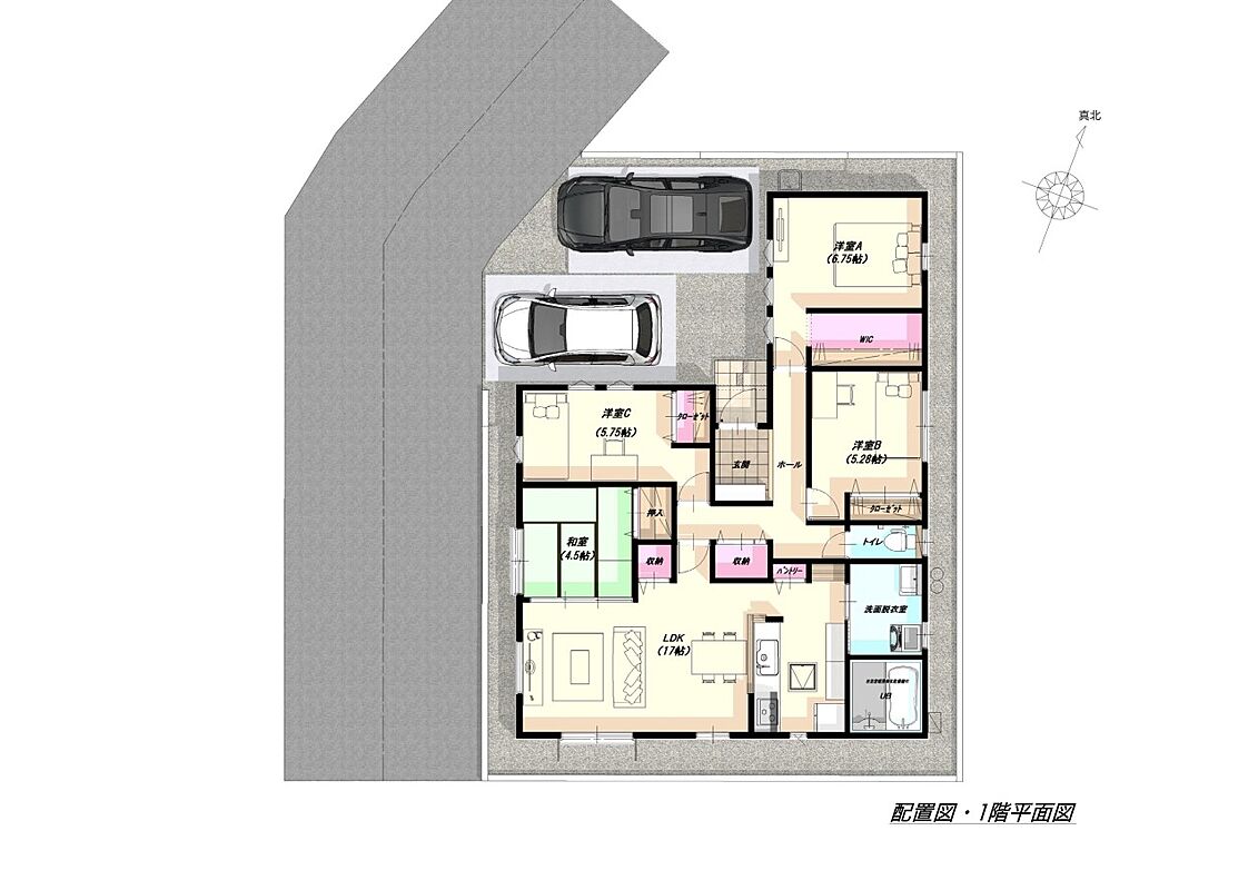 - ※完成予想図やCG合成画像は、門塀・植栽・庭・外観等、実際とは多少異なる場合があります。