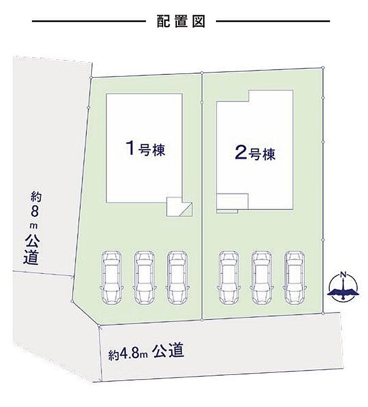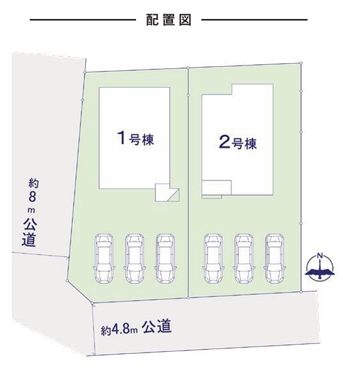 | 駐車場 | 3台 | 道路の幅員 | 2号棟:南4.8m /1号棟:南4.8m 西8m |