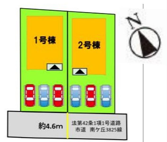 | 駐車場 | 3台 | 道路の幅員 | 1号棟:南西4.6m |