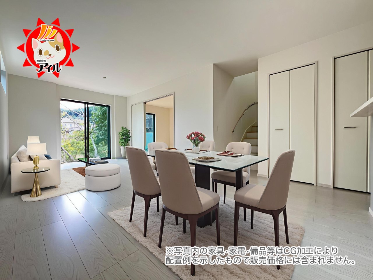 - ※完成予想図やCG合成画像は、門塀・植栽・庭・外観等、実際とは多少異なる場合があります。
