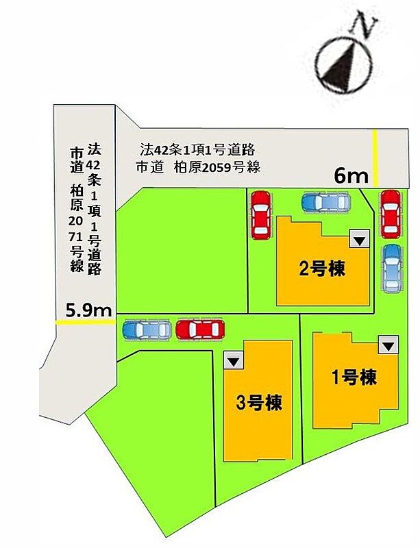 | 駐車場 | 2台 | 道路の幅員 | 3号棟:西5.9m |