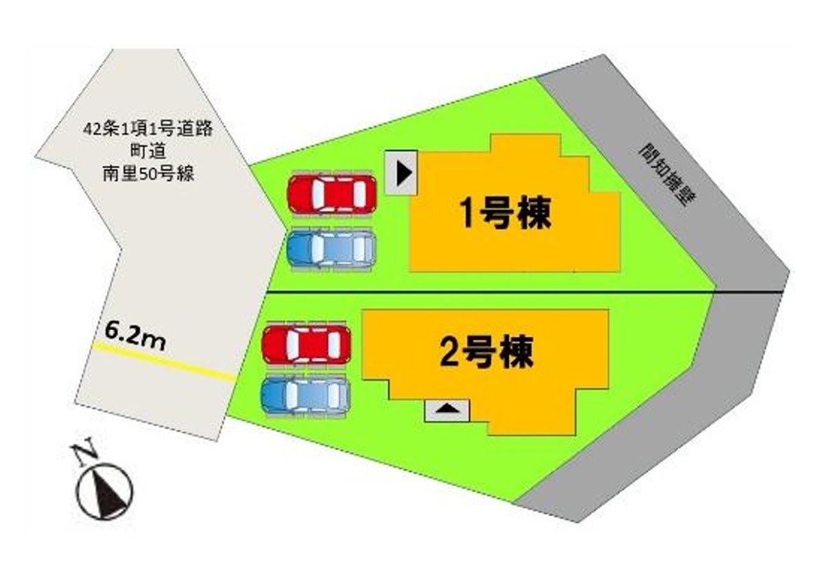 | 駐車場 | 2台 | 道路の幅員 | 2号棟:西6.2m |