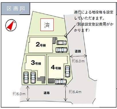 | 駐車場 | 2台 | 道路の幅員 | 4号棟:南東6m 北東6m /3号棟:南東6m |