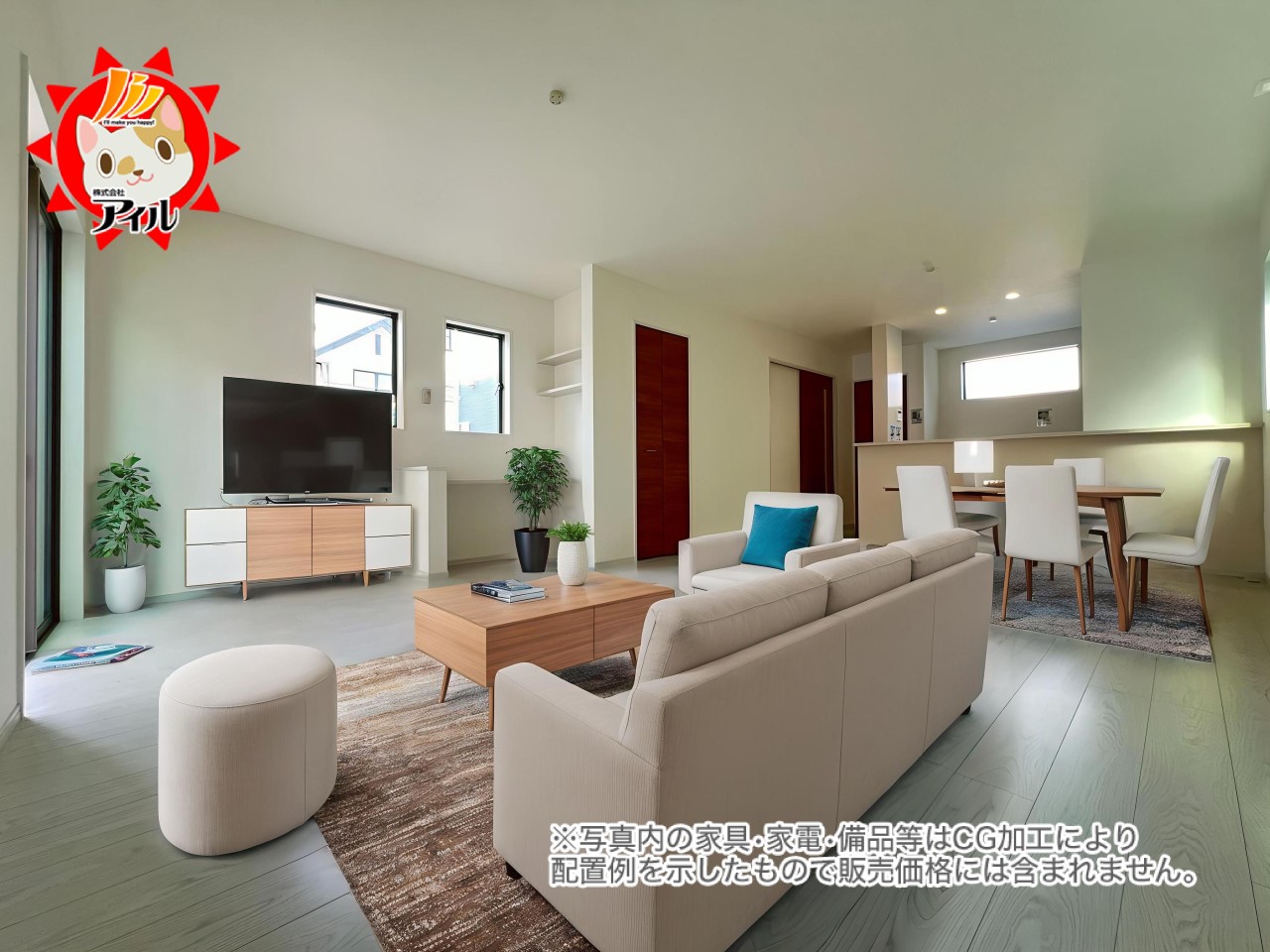 - ※完成予想図やCG合成画像は、門塀・植栽・庭・外観等、実際とは多少異なる場合があります。