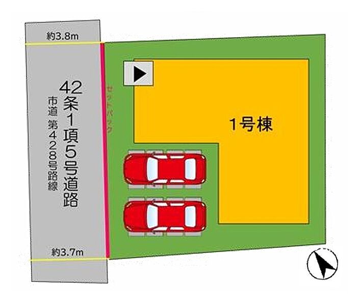 | 駐車場 | 2台 | 道路の幅員 | 1号棟:北西3.8m |