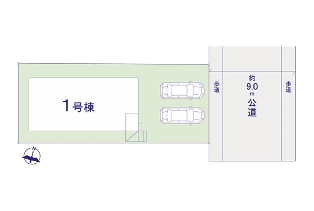 | 駐車場 | 2台 | 道路の幅員 | 1号棟:東9m |