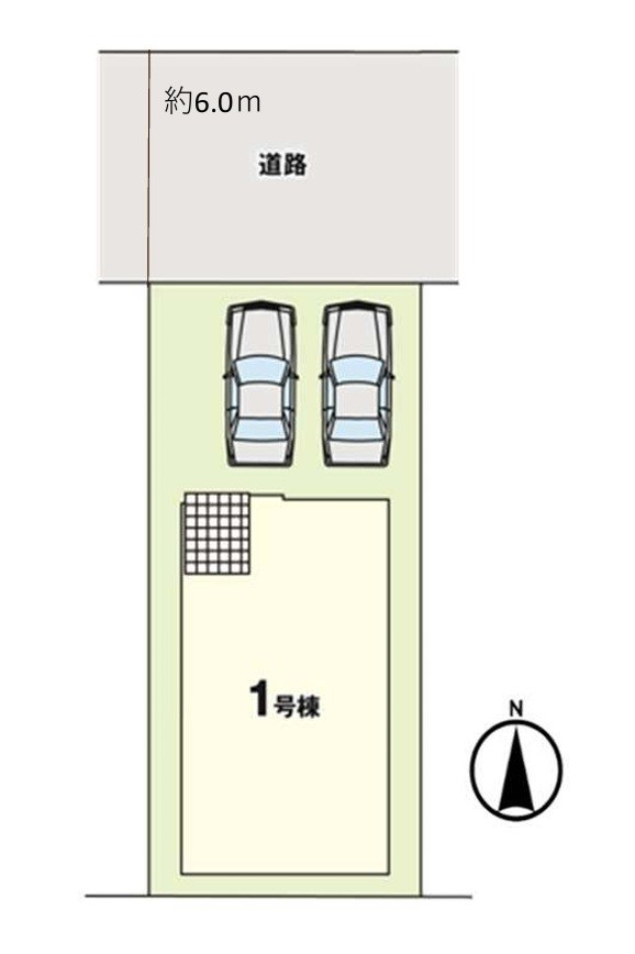 | 駐車場 | 2台 | 道路の幅員 | 1号棟:北6m |