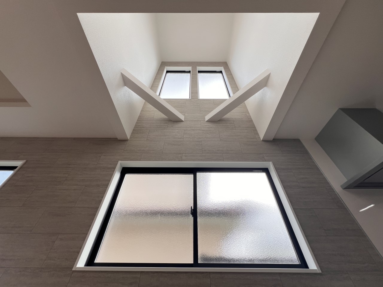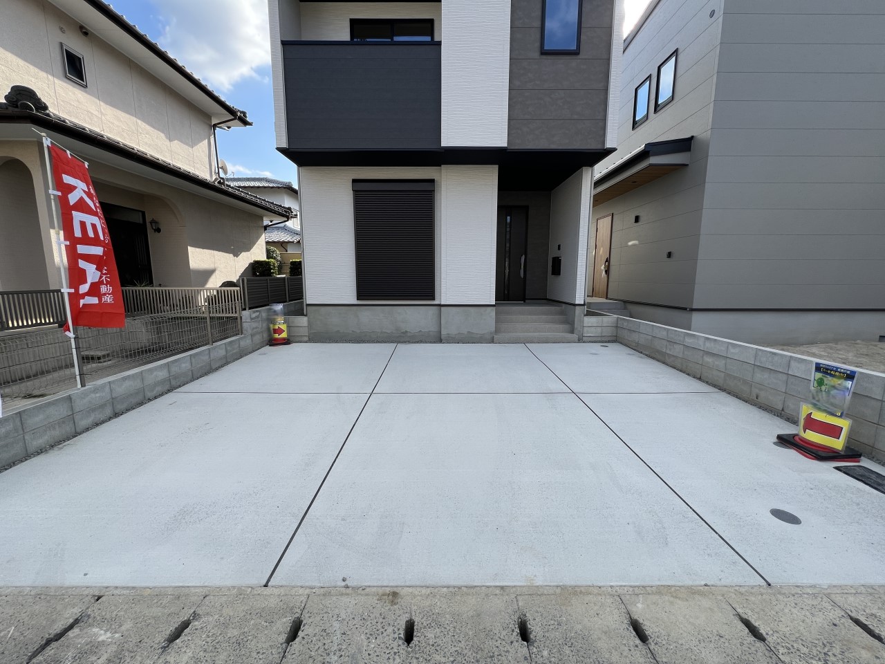 ◆リビングは吹抜+折上天井仕様で開放的な空間♪ ◆バルコニーは2ヶ所に設置 全居室二面採光! ◆カースペース並列2台駐車可能! ◆接道広々6m 交通量も少なく駐車や離合の際も安心です♪