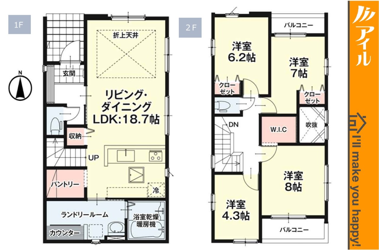 ■アイルは安心の創業39年! 定休日なし 毎日現地見学可能 店舗はリクルート天神ビル4Fです ■現地案内随時受付中 当日のご内覧も可能です!お仕事帰りのお時間でも事前にご相談頂ければ調整いたします。 ・さくっとコース・・・忙しいお客さまでもさくっとご見学可能です。 ・ゆっくりコース・・・細かい設備等もゆっくりとご説明させていただきます。 ・じっくりコース・・・分譲地+周辺環境なども一緒にご紹介可能です。 その他お客さまのご予定に合わせてご内覧いただけます。 ■お子様連れでのご内覧・ご来店も大歓迎! お子様向けのお菓子等ご用意しております。お気軽にお申し付けくださいませ。 ■ご案内方法 ◎お客さまのご指定時間帯に、現地物件でのお待ち合わせ ◎担当スタッフによる送迎 ・ご自宅 ・最寄駅 ・物件近くの目印施設 etc… その他ご希望のお迎え場所等ございましたらお気軽にご相談下さい。 ◎弊社にご来店される場合 福岡市中央区舞鶴1-1-3 リクルート天神ビル4F ※お車でお越しの場合、駐車場料金は弊社が負担いたしますのでご安心ください 『接道』一方 北6m公道 『法令上の制限』文化財保護法:有建築協定:有景観法:有宅地造成工事規制区域:有高度地区:有その他制限事項:法第22条区域 設備:都市ガス 公営水道 下水 防犯シャッター 吹き抜け 駐車場2台以上 閑静な住宅地 平坦地 地盤調査済 前道6m以上 周辺交通量少なめ スーパーが近い(10分以内) 小学校徒歩10分以内 中学校徒歩10分以内 コンビニ5分以内 システムキッチン ガス3口 カウンタキッチン 対面キッチン 食器洗い機付き 浄水器 パントリー(食器・食品の収納庫) 追い焚き 浴室乾燥機 ウォシュレット オートバス付き 脱衣所 トイレ2ヶ所 浴室1坪以上 浴室暖房 バルコニー2面 南面バルコニー 2階建 LDK18畳以上 全室2面採光 全室フローリング リビング階段 クローゼット ウォークインクローゼット 床下収納 下駄箱 シャンプドレッサー付き フラット35Sに対応 年内入居可 モニタ付きインターフォン 複層ガラス 陽当り良好 24時間換気システム |