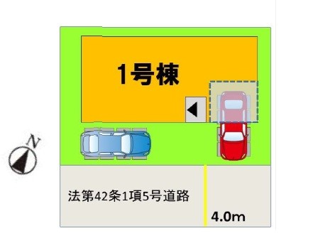 | 駐車場 | 2台 | 道路の幅員 | 1号棟:南4m |
