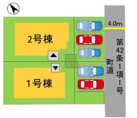| 駐車場 | 2台 | 道路の幅員 | 1号棟:南東4m |