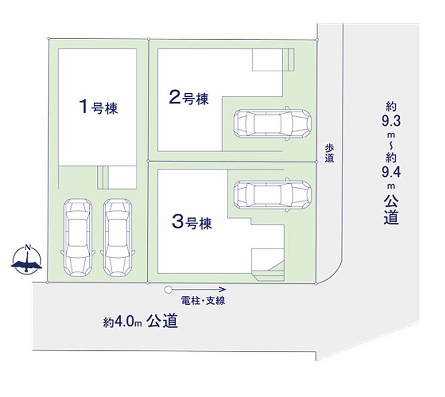 | 駐車場 | 1台 ~ 2台 | 道路の幅員 | 2号棟:東9.3m /1号棟:南4m |