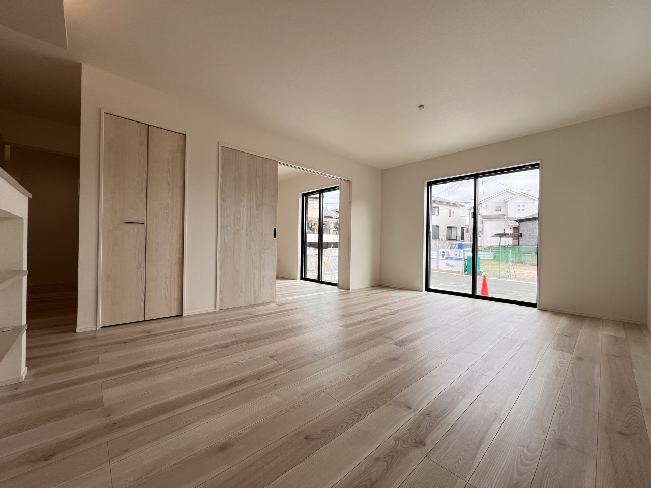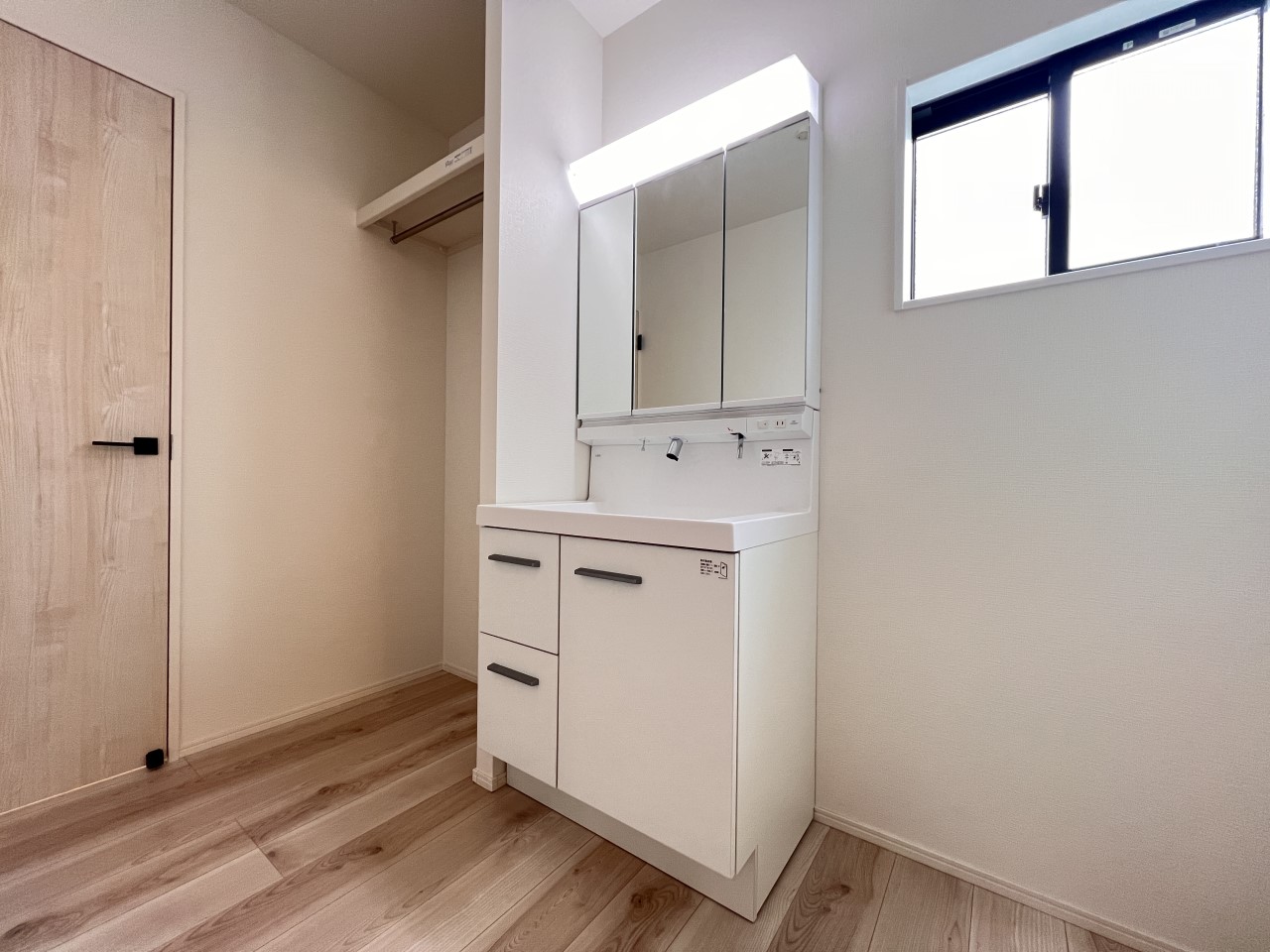 ◆全居室に収納スペースを完備!脱衣所は広々設計 ◆5号棟→2面バルコニー ◆並列3台駐車可 ◆接道は広めの6m 開発道路の為、交通量は少なめです