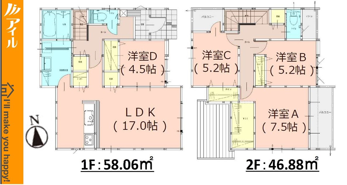 ■アイルは安心の創業39年! 定休日なし 毎日現地見学可能 店舗はリクルート天神ビル4Fです ■現地案内随時受付中 当日のご内覧も可能です!お仕事帰りのお時間でも事前にご相談頂ければ調整いたします。 ・さくっとコース・・・忙しいお客さまでもさくっとご見学可能です。 ・ゆっくりコース・・・細かい設備等もゆっくりとご説明させていただきます。 ・じっくりコース・・・分譲地+周辺環境なども一緒にご紹介可能です。 その他お客さまのご予定に合わせてご内覧いただけます。 ■お子様連れでのご内覧・ご来店も大歓迎! お子様向けのお菓子等ご用意しております。お気軽にお申し付けくださいませ。 ■ご案内方法 ◎お客さまのご指定時間帯に、現地物件でのお待ち合わせ ◎担当スタッフによる送迎 ・ご自宅 ・最寄駅 ・物件近くの目印施設 etc… その他ご希望のお迎え場所等ございましたらお気軽にご相談下さい。 ◎弊社にご来店される場合 福岡市中央区舞鶴1-1-3 リクルート天神ビル4F ※お車でお越しの場合、駐車場料金は弊社が負担いたしますのでご安心ください 『接道』一方 東6m公道 設備:都市ガス 公営水道 下水 防犯シャッター BELS/省エネ基準適合認定書あり 駐車場2台以上 高台に立地 閑静な住宅地 地盤調査済 土地50坪以上 前道6m以上 周辺交通量少なめ スーパーが近い(10分以内) 小学校徒歩10分以内 保育施設・幼稚園5分以内 システムキッチン カウンタキッチン 対面キッチン 食器洗い機付き 浄水器 パントリー(食器・食品の収納庫) コンロ口数三口 追い焚き 浴室乾燥機 ウォシュレット オートバス付き 脱衣所 トイレ2ヶ所 浴室1坪以上 節水型トイレ 浴室暖房 バルコニー バルコニー2面 2階建 LDK15畳以上 採光2面 南西向き 全室フローリング スマートキー クローゼット ウォークインクローゼット 収納 床下収納 下駄箱 全居室収納 シャンプドレッサー付き フラット35Sに対応 年内入居可 モニタ付きインターフォン 複層ガラス 火災警報器(報知機) 通風良好 陽当り良好 24時間換気システム |