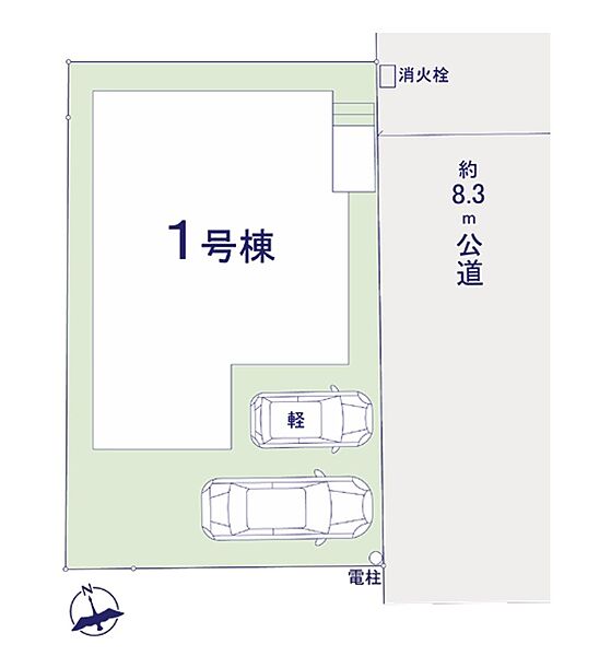 | 駐車場 | 2台 | 道路の幅員 | 1号棟:南東8.3m |