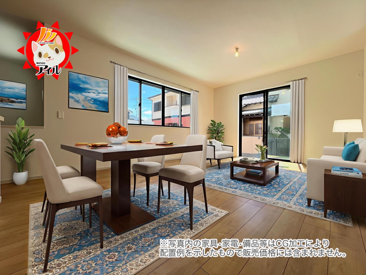 - ※完成予想図やCG合成画像は、門塀・植栽・庭・外観等、実際とは多少異なる場合があります。