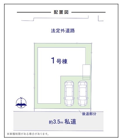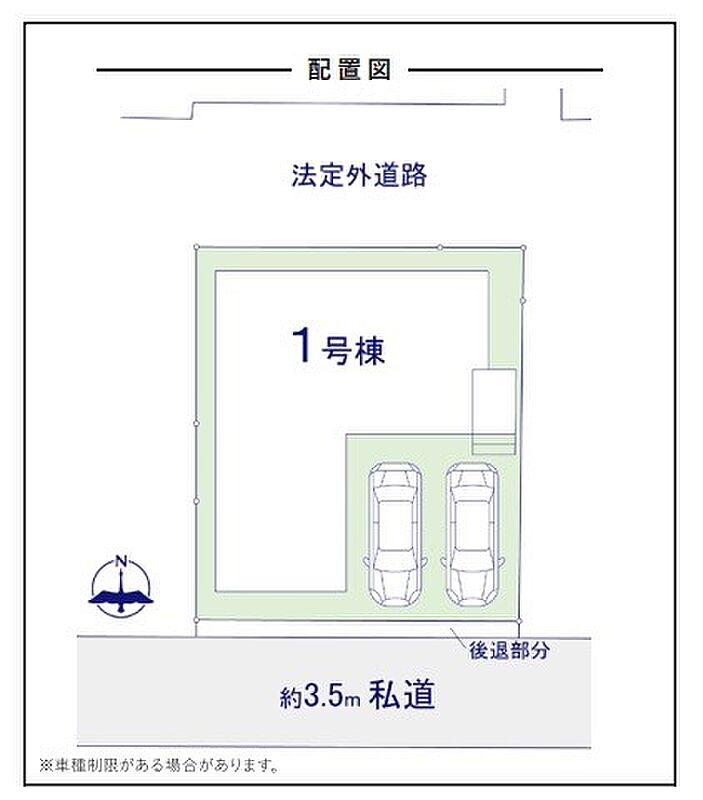 | 駐車場 | 2台 | 道路の幅員 | 1号棟:南3.5m |