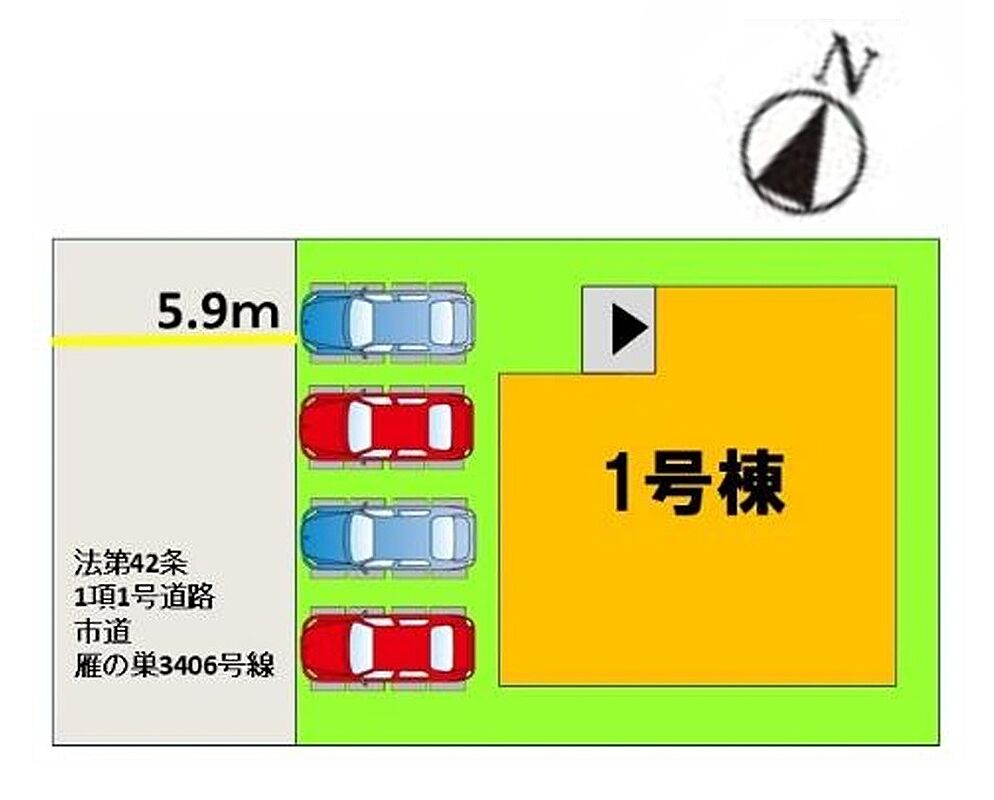 | 駐車場 | 4台 | 道路の幅員 | 1号棟:西5.9m |