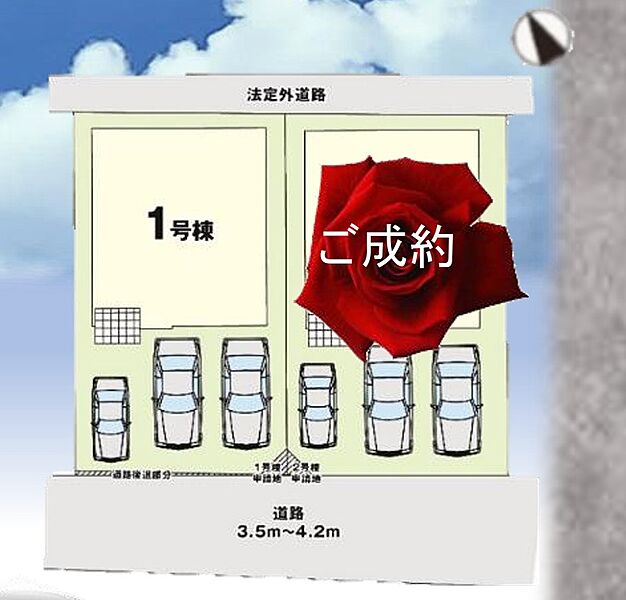 | 駐車場 | 3台 | 道路の幅員 | 1号棟:南西3.5m |