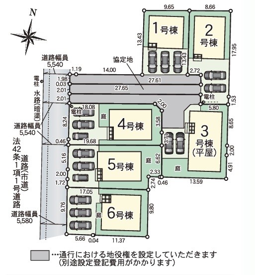 | 駐車場 | 3台 | 道路の幅員 | 5号棟:西5.5m |