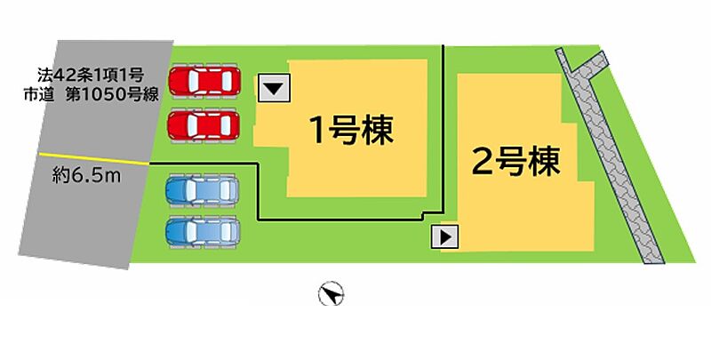 | 駐車場 | 2台 | 道路の幅員 | 1号棟:北5.9m /2号棟:北5.9m |