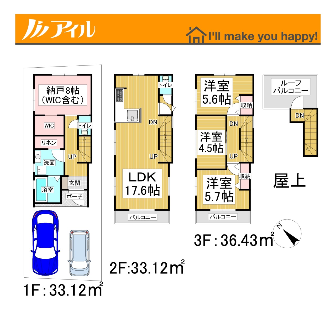 | 建物面積 | 106.39m2~106.47m2 | 土地面積 | 74.95m2 |
