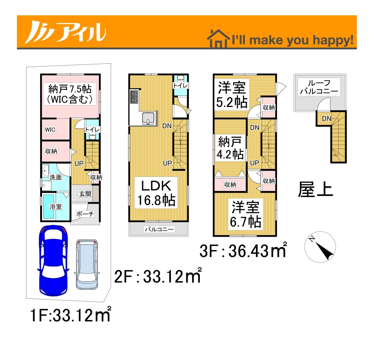 3号棟 間取り 2LDK+2S 価格 4488万円 建物面積 106.47m2 土地面積 74.95m2 -