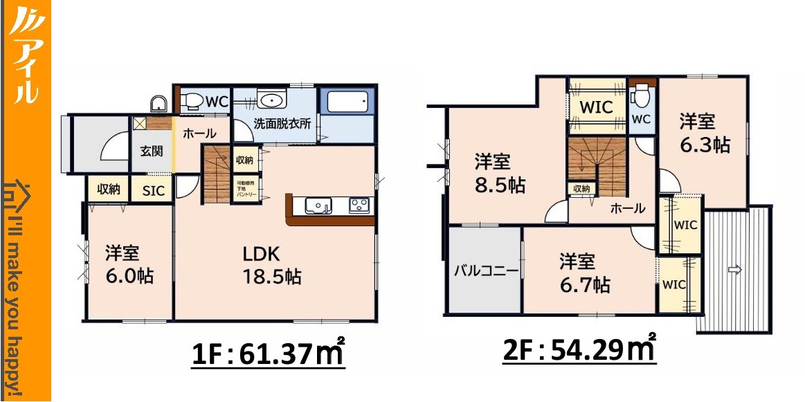 ◆【1/6もうすぐ完成 住みかエール対象物件 各種図面すぐにお届けできます】 ◆お車は並列4台駐車可能! ◆SIC、WIC3ヶ所、パントリー等収納充実 ◆LDK18.5帖 洋室6帖が隣接した南東向き