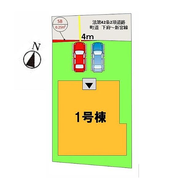 | 駐車場 | 2台 | 道路の幅員 | 1号棟:北4m |