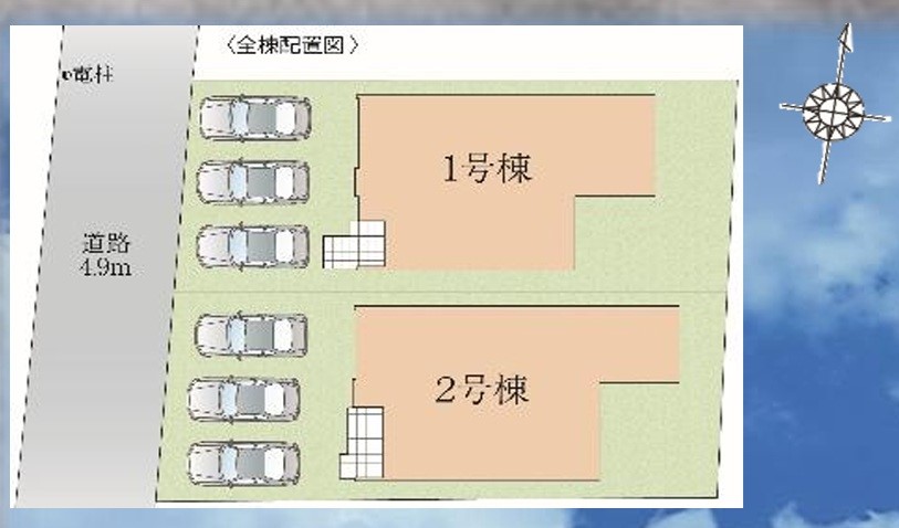 | 駐車場 | 3台 | 道路の幅員 | 2号棟:西4.9m |